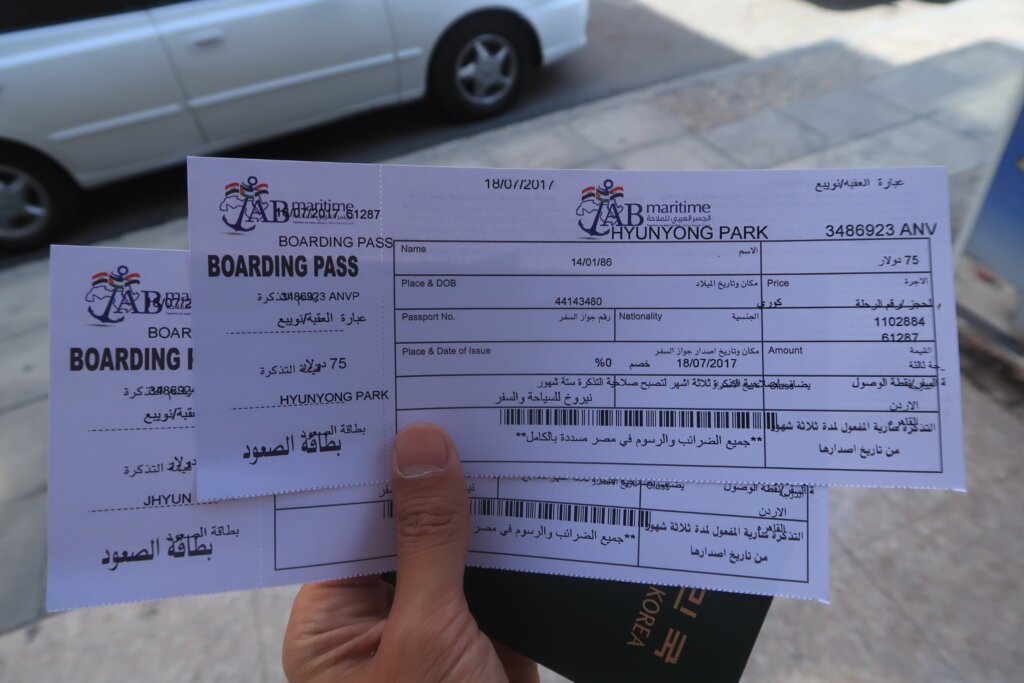 Surprisingly, even though we’d seen a ticket counter inside the port when we arrived in Jordan, the driver insisted we buy tickets here. The price was the same: 75 USD per adult. Cards weren’t accepted, so we paid in Jordanian dinars.