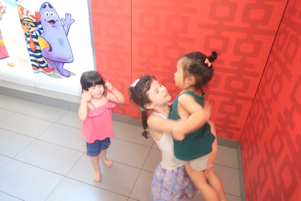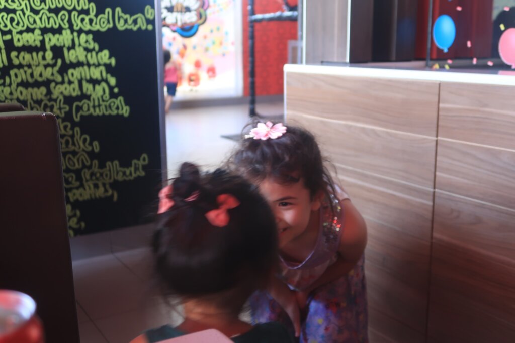 McDonald’s in Jordan—just like in Egypt—had a playground. Sweetie was thrilled and didn’t hesitate to jump right in. She instantly made friends. A group of local girls even took turns hugging her and playing together. One of the older girls called the rest over so we could take a group photo together.