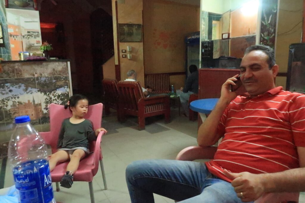 We checked into Yaseen Hotel—a popular stop among Korean travelers. It had the local flavor with a narrow alley entrance and vivid street scenes. 120 EGP per night, no negotiations. Egyptians don’t budge easily on prices!