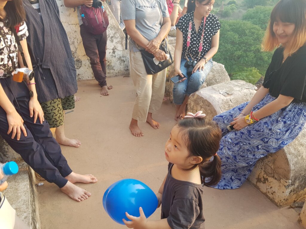 Her innocent voice echoed across the pagoda, making the surrounding tourists smile and glance our way. Some Korean tourists even laughed, remarking about how special it was to see a baby at sunrise in Bagan.