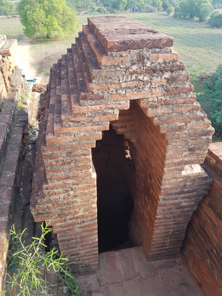 This pagoda felt almost forgotten, with visible earthquake damage and parts of its red-brick structure crumbling. A hidden narrow staircase led us up to a terrace, where we could explore in solitude.