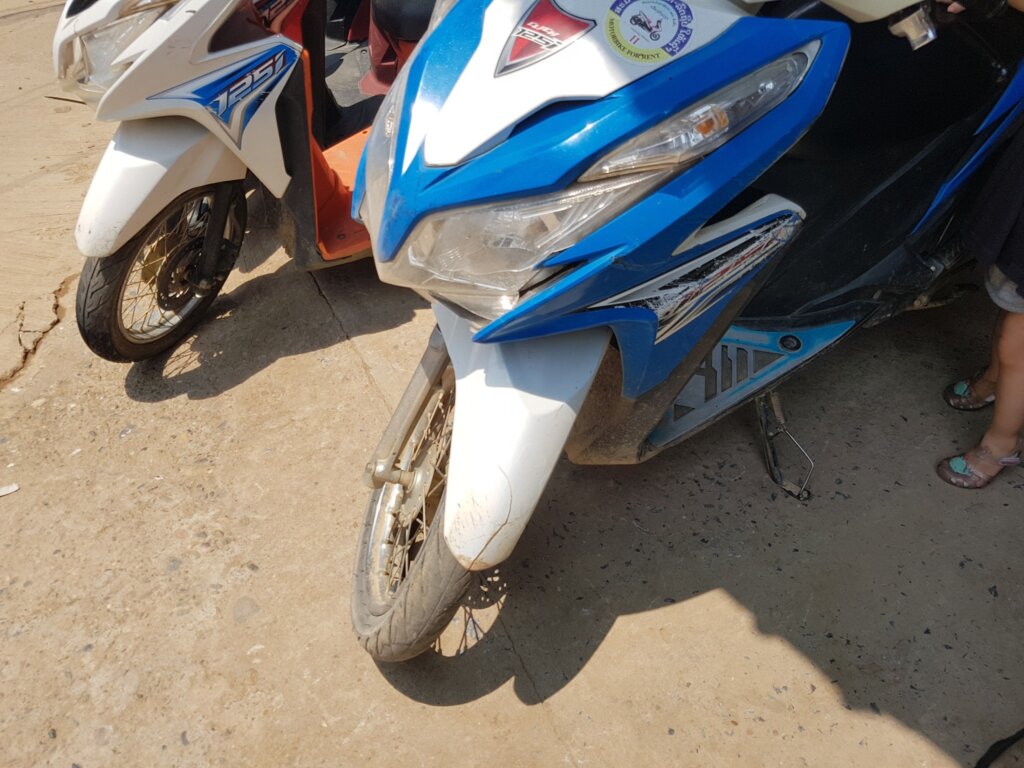 After a lazy morning at the guesthouse, we rented a scooter to make our way there. Renting from a local shop cost 40,000 kip ($5.60) for a full day, though we had to inspect the bike thoroughly and document its conditionโcommon advice for avoiding disputes over damages. With 10,000 kip worth of fuel, we were ready to go.
