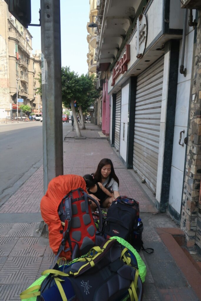 The Cairo train station was a sea of people. Sweetie in my arms, backpacks stacked on us, we fought our way out.