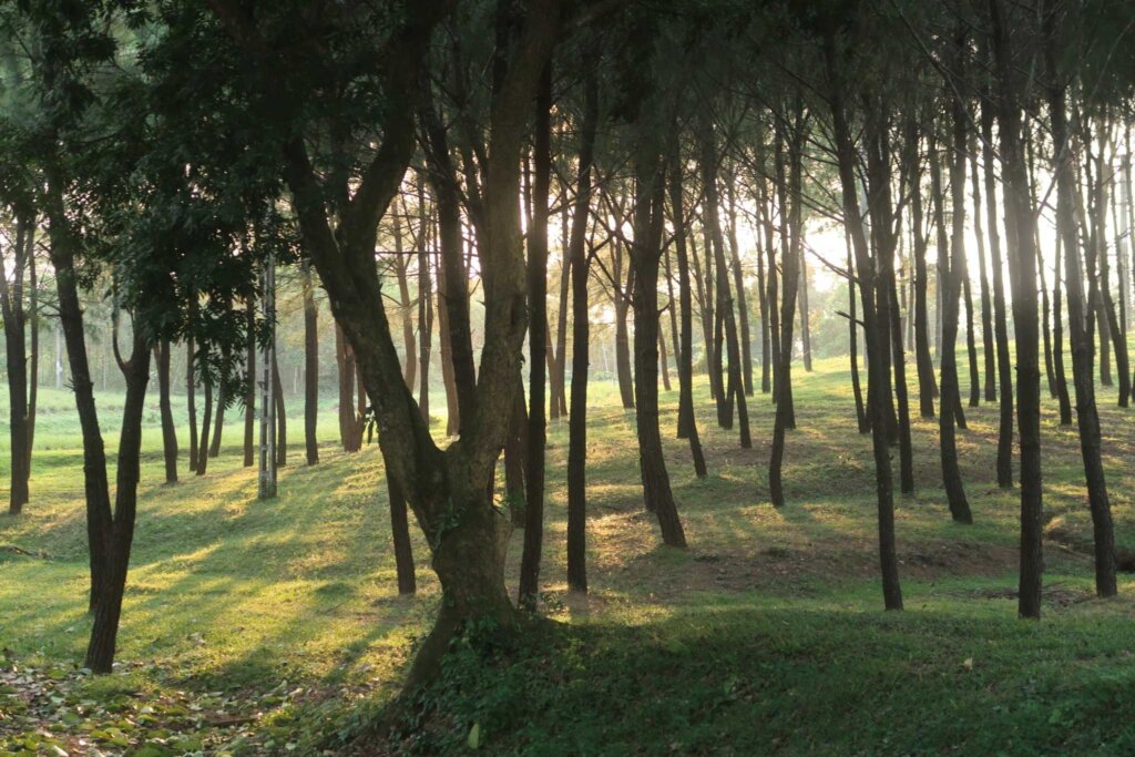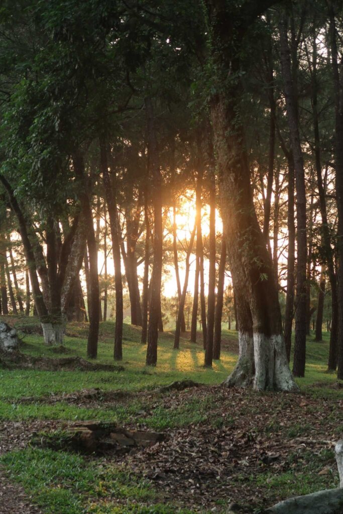 As we walked deeper into the forest, the serene atmosphere was breathtaking. Tall trees cast long shadows over the mossy ground, and the golden glow of the setting sun created a magical ambiance. It felt like stepping into a different era.