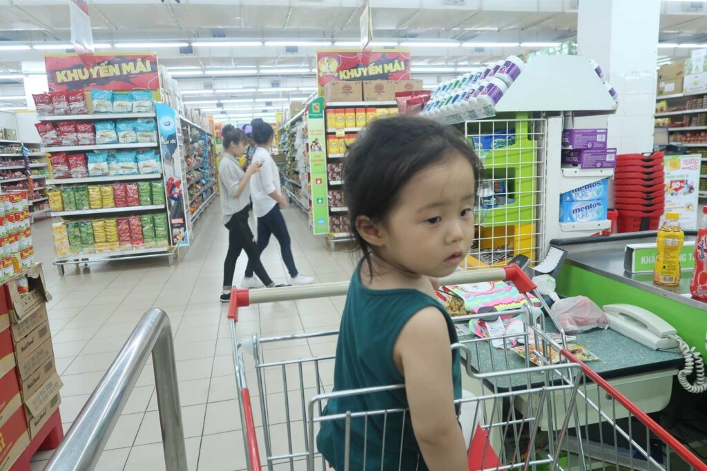 Hueโ€™s Big C Mart is a haven for families traveling with kids. Sweetie lit up with excitement in the cool, familiar environment of the supermarket.
