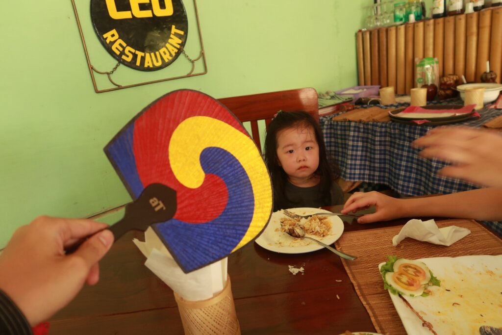 Hungry from our morning exploration, we headed to Leo Restaurant, highly rated on TripAdvisor. The food, though neatly presented, was mediocre and overpriced compared to local eateries. Unfortunately, the experience was marred by relentless flies that even Sweetie couldn’t escape. Thankfully, the staff kindly offered a fan to keep the flies away while Sweetie ate.