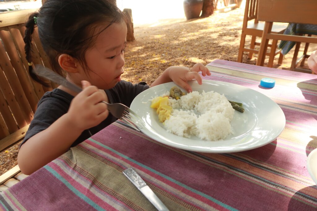 Traveling with a baby brings out the generosity of locals. When we asked for a small plate for Sweetie, the owner kindly brought over a bowl of rice, smiling warmly. Without speaking the same language, he gestured to Sweetie and placed his hand over his heart โ a universal expression of kindness.