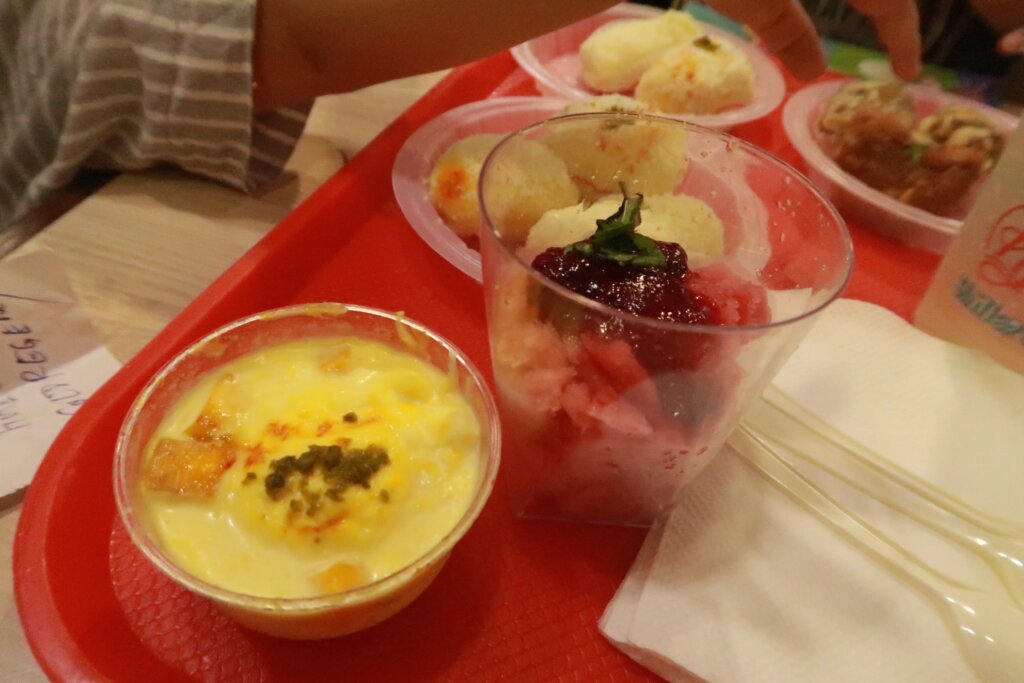 We sampled a variety of sweets, including nut-based treats and dairy desserts. While delicious, their intense sweetness quickly became overwhelming. The limeade we ordered turned out to be spiced with bold Indian flavors—a surprising twist!