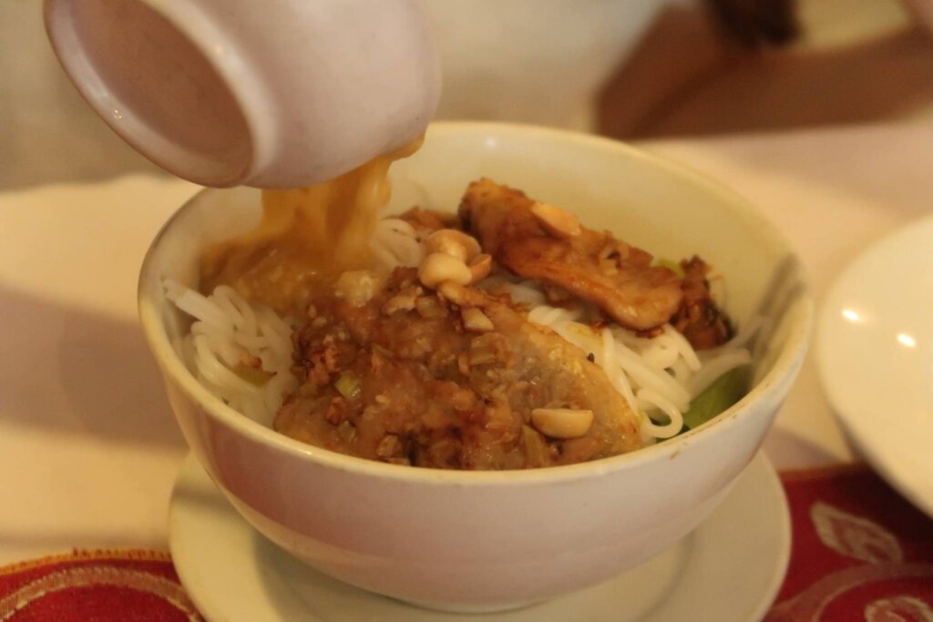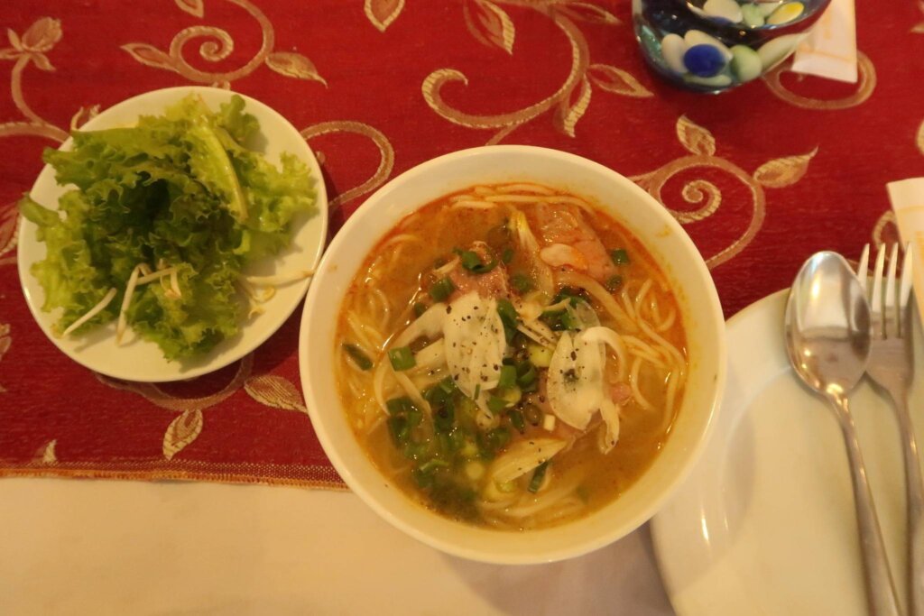 We made our way to Chu Van An, a street popular with travelers, and chose a place called “Kangaroo Hue” based on its glowing reviews. I ordered the local dish bun bo Hue, while Julie tried bun thit nuong.