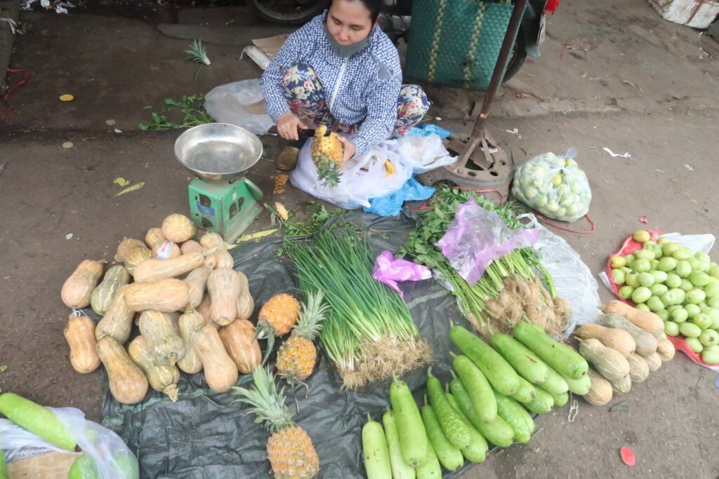 In the fruit section, Julie craved pineapple, so we bought one for 10,000 VND (roughly 500 KRW). The vendor even peeled and cut it for us on the spot. Seeing the bright yellow flesh, my expectations soared—and the juicy, sweet taste didn’t disappoint.