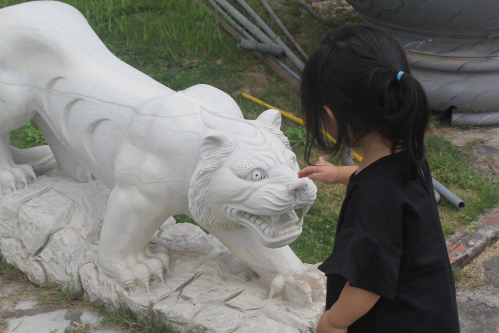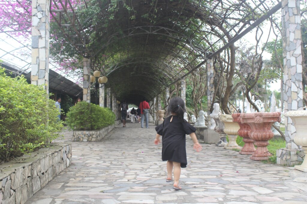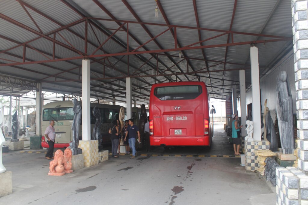 At 8 AM, the tour bus arrived to pick us up. For the next 4.5 hours, we traveled along Vietnam’s highways, punctuated by a quirky rest stop showcasing seemingly every knickknack imaginable. Sweetie stayed cheerful, marveling at the view from the bus window and dozing intermittently.