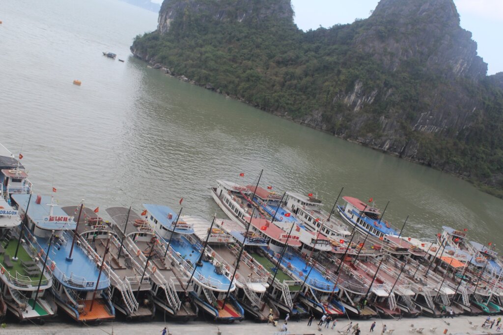 After a long drive, we finally arrived at the Ha Long Bay port, greeted by clear skies and sparkling waters. The dramatic limestone karsts rising from the emerald sea looked just like the images on Vietnam’s 20,000 VND note.
