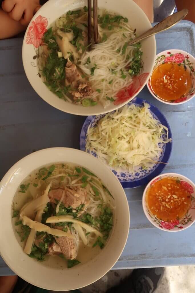 The shop didnโ€™t have a menu, and the owner didnโ€™t speak English. Through hand gestures, we ordered two bowls of chicken pho with bamboo shoots and coriander. While Julie found the strong coriander flavor overwhelming, I thoroughly enjoyed the local taste. Sweetie, however, needed some coaxing to finish her meal. Using her favorite doll as motivation, we succeededโ€”parenting win!