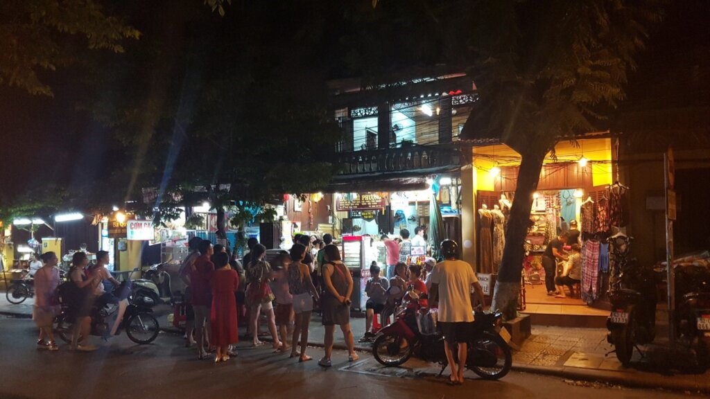 Hoi An is known for its culinary delights, and our goal was to find the famous Banh Mi Phuong. After navigating bustling streets filled with honking scooters and weaving through lines of eager customers, we finally reached the shop. The atmosphere was chaotic, with seven women working tirelessly to assemble the sandwiches while customers vied for attention. Despite the frenzy, the banh mi was worth it – delicious and reasonably priced. Reflecting on the experience, I couldn’t help but compare it to the less-than-stellar banh mi we had on De Tham Street earlier on our trip.