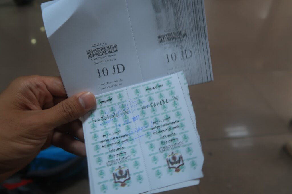 Everyone must pay it—including babies. It’s 10 dinars per person and must be paid in cash. Don’t misplace the documents you receive.