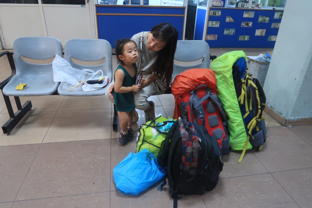 The departure hall was tiled and slippery. While we were waiting, Sweetie was running around and suddenly slipped—falling backwards and hitting her head hard on the floor. It was the kind of fall that makes your heart drop. We panicked for a moment, but she seemed okay. As of writing this, five days later, she’s still full of energy. But it was a scary reminder of how fast things can happen when you travel with a toddler.