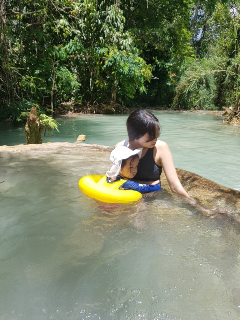 The pools at Kuang Si are beautiful but cold. Monitor your child’s swim time to prevent them from getting too chilly, and bring towels and warm clothes for after the swim.