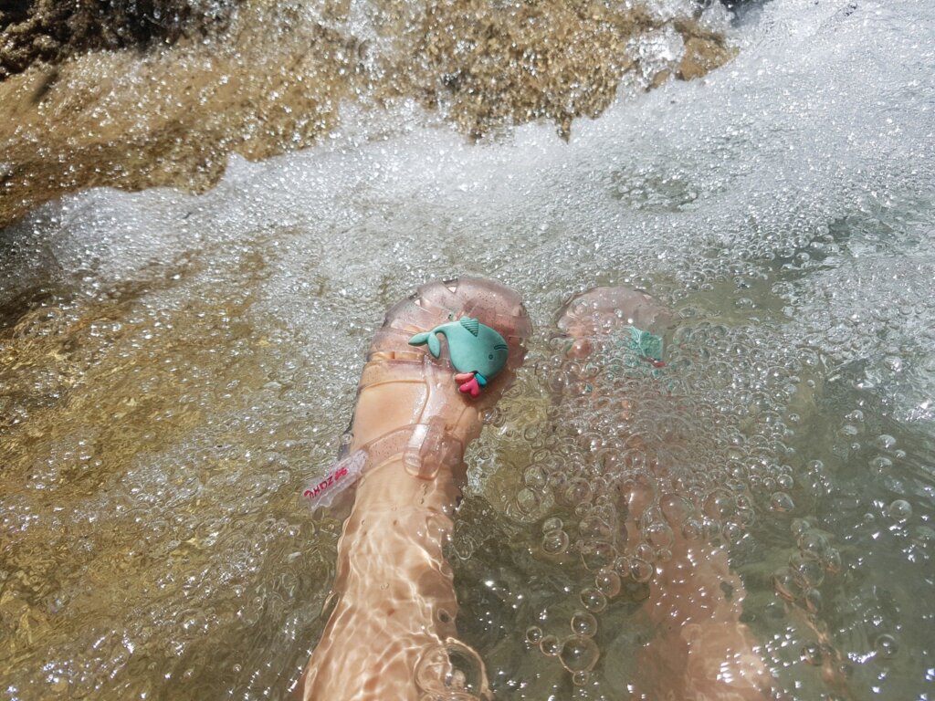 Back at the lower pools, Sweetie delighted in splashing around with her inflatable tube. Although the water was icy, her laughter made it all worthwhile. However, after noticing her lips turning blue, we quickly dried her off and ensured she warmed up.