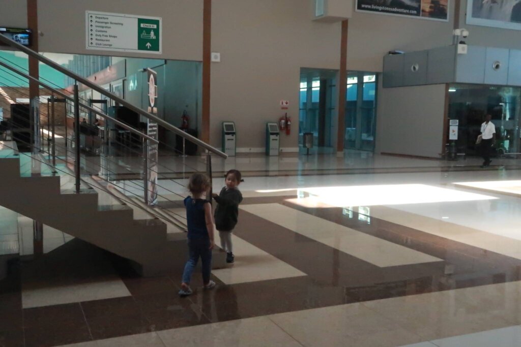 Sweetie made her entrance into Zambia by running out of immigration on her own, following a local girl around her age. Already exploring!
