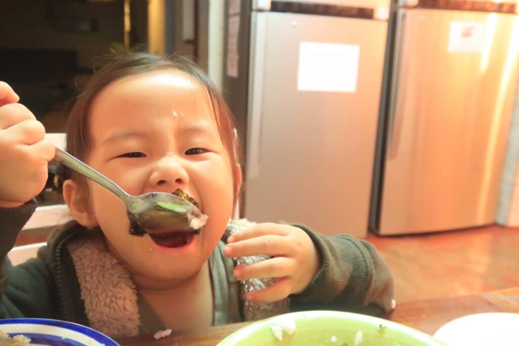 Sweetie got a piece of Korean seaweed from the woman, and she devoured her rice like she hadn’t eaten in days. It was such a funny moment — like watching a baby version of Ha Jung-woo eat onscreen.