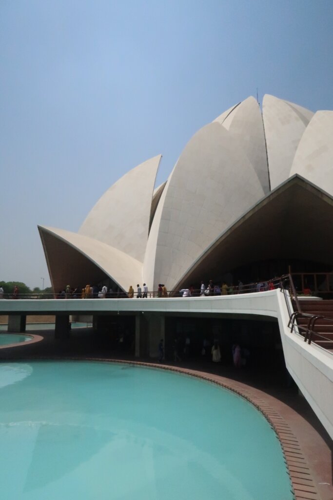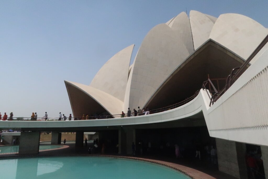 Designed by Canadian architect Fariborz Sahba, the temple features 27 white marble “petals” arranged in nine sides to represent the unity of major world religions. Surrounded by reflective pools, the design resembles a blooming lotus flower.