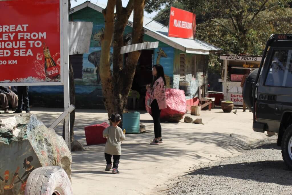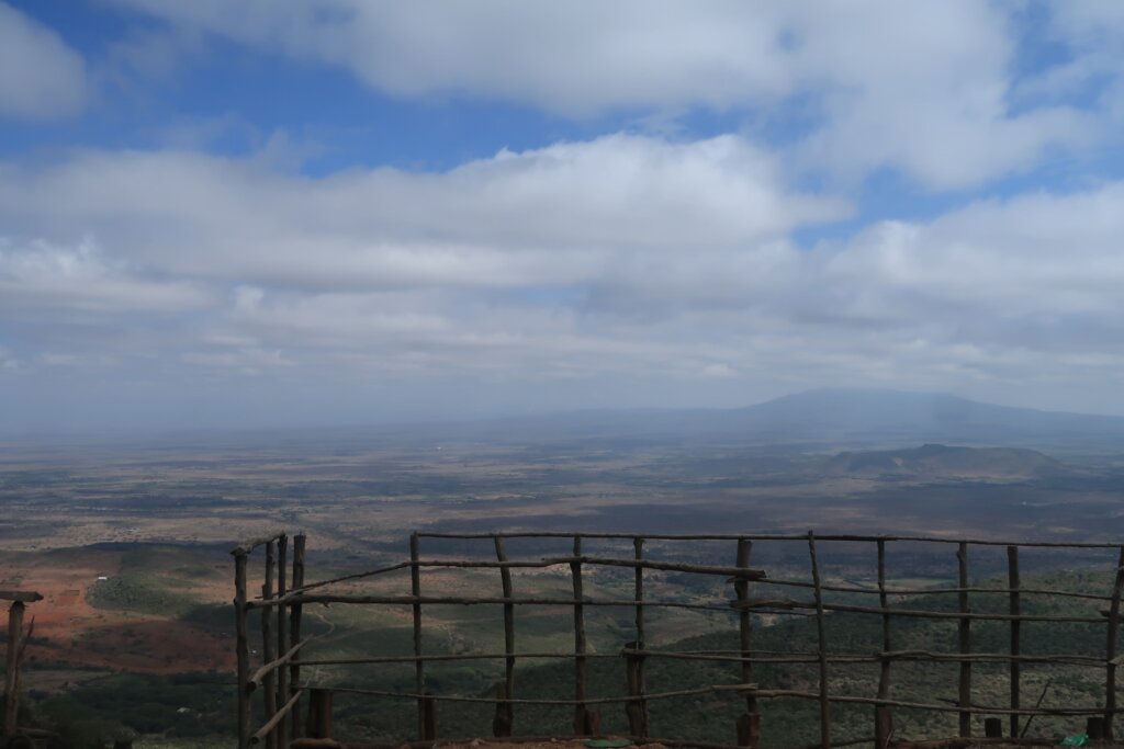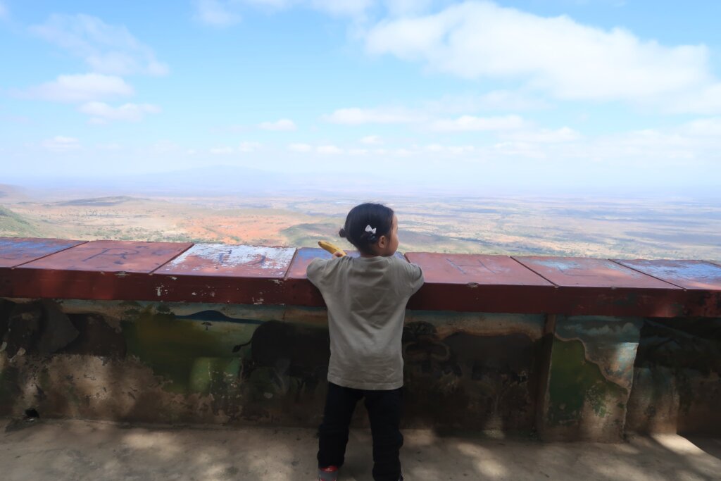 About 30 minutes into the drive, we stopped briefly to admire the view of the Great Rift Valley. The landscape stretched far beyond the horizon—no tall buildings, just wide-open beauty. Sweetie looked out over the valley too, enjoying the wind and space.