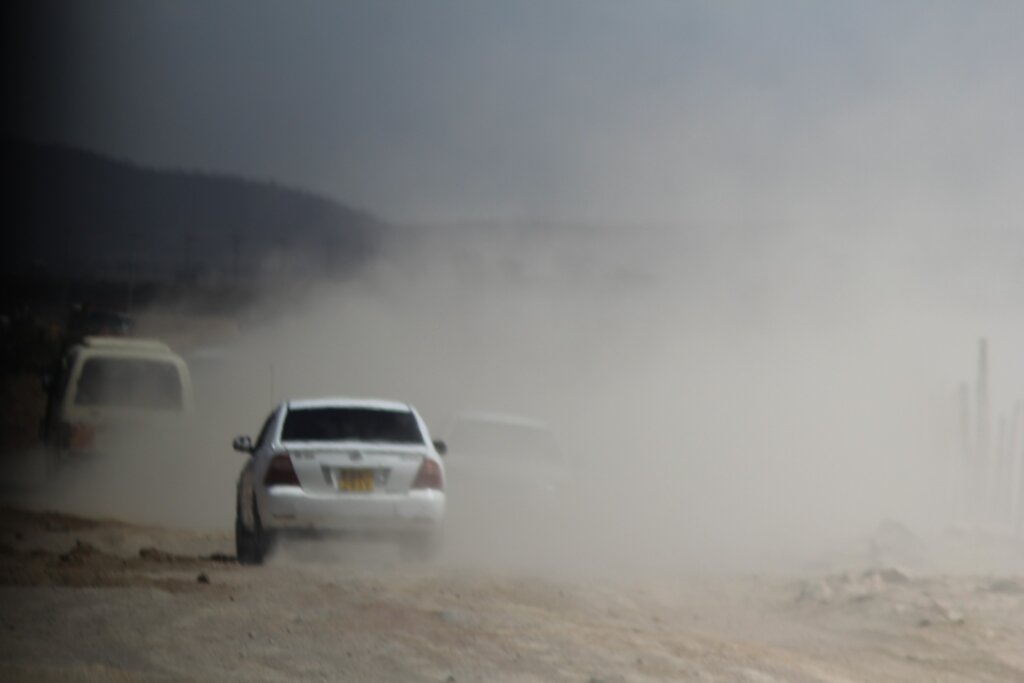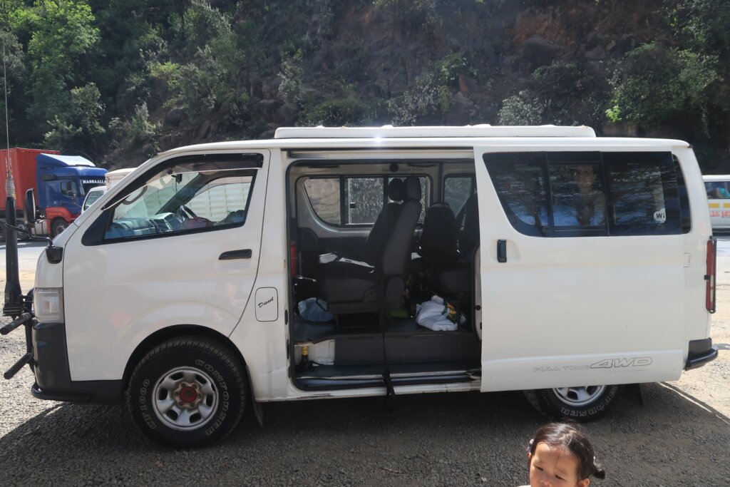We hopped back in the van and continued the drive. The road turned rough—not just bumpy but bone-shakingly unpaved. For kilometers. The whole vehicle rocked like we were on a theme park ride.