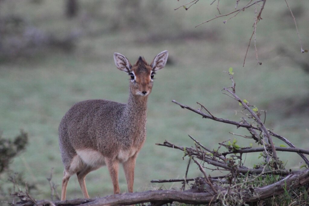 The game drive kicked off early, and the sun slowly climbed up from behind us as we headed east to west across the park. Within minutes, we spotted our first animal of the day—a dik-dik, the smallest member of the antelope family. It was tiny, maybe the size of a rabbit, with huge glassy eyes and nervous little legs. For a moment it just froze, eyes locked on us, before darting away like a little cartoon character. Sweetie giggled at its sudden sprint.