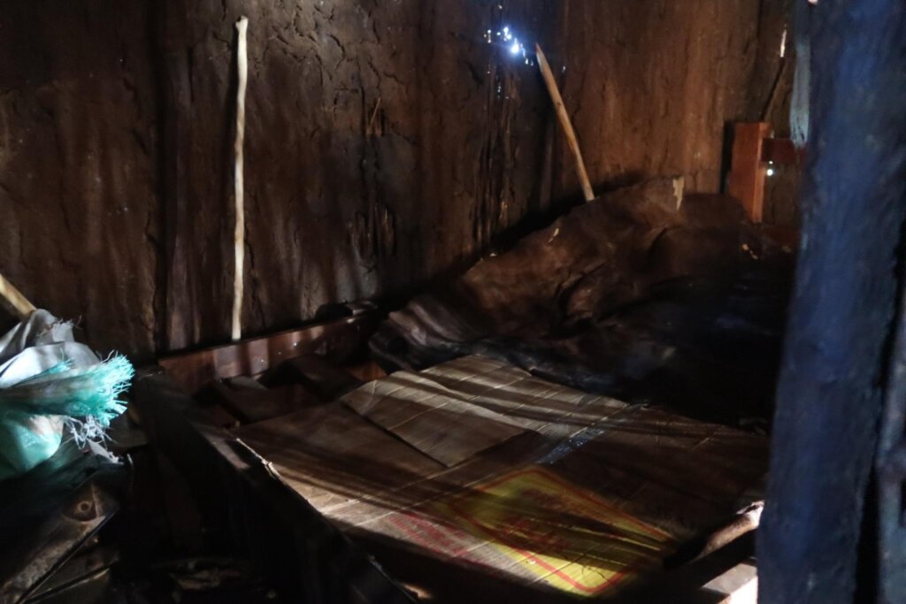 Inside the huts, things were tight and dark. Each hut had three tiny sleeping spaces, a central kitchen, and a corner stall for calves. It felt real. You could see some ashes left in the fire pit, so they definitely live here.