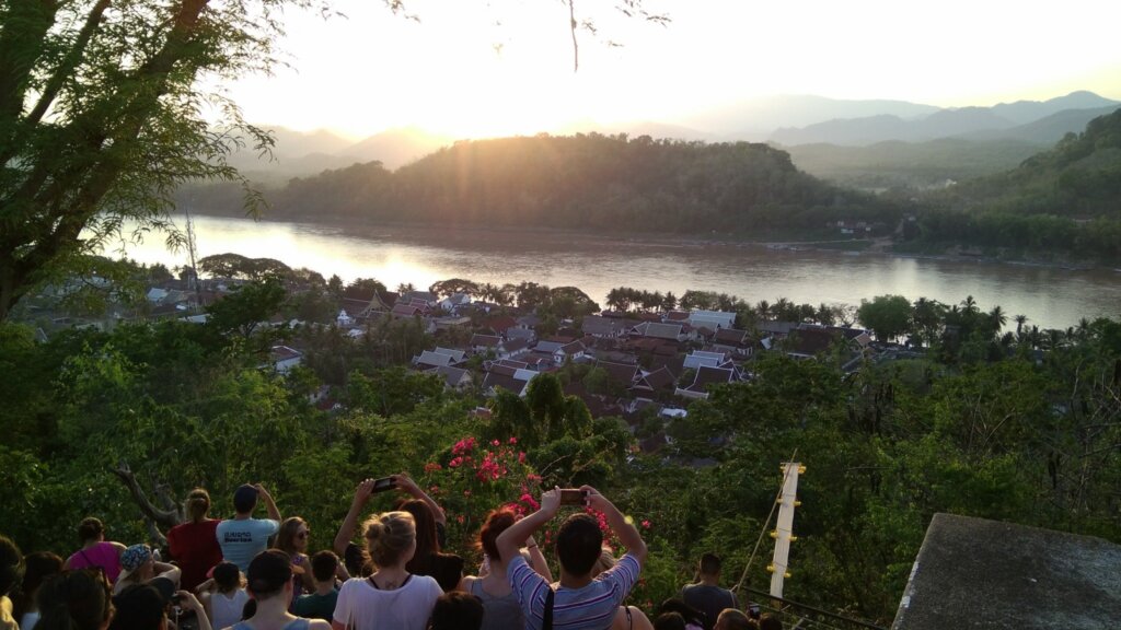 Experience the magic of a Mount Phousi sunset in Luang Prabang with your family. Tips for traveling with a baby, local insights.
