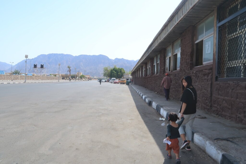 We quickly learned that the next bus to Nuweiba was at 10:30 a.m. But when we bought our tickets, they showed an 11:00 a.m. departure time. Patience is a traveler’s best friend, especially with a baby. We settled in to wait.