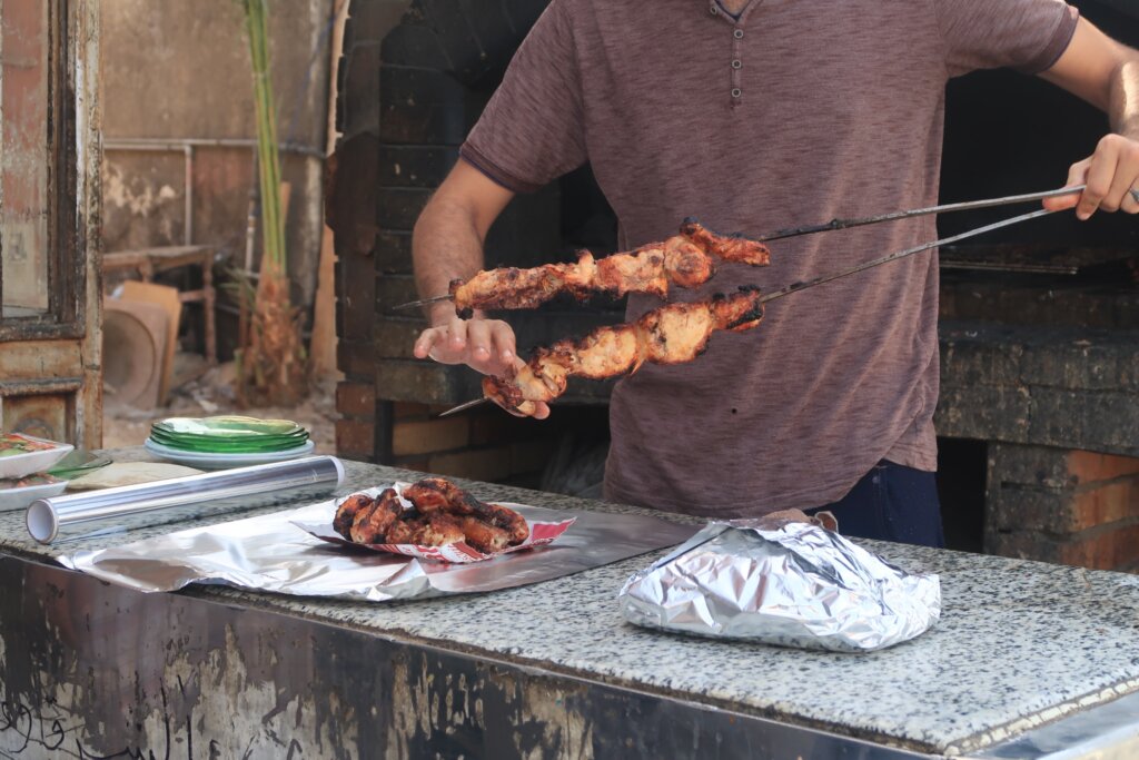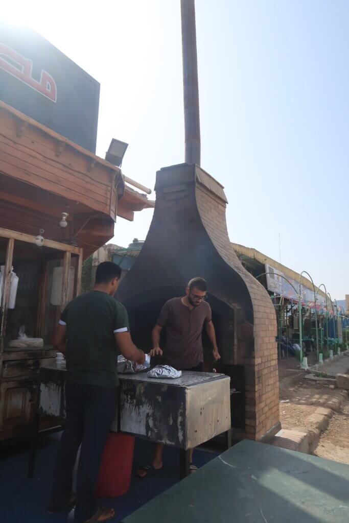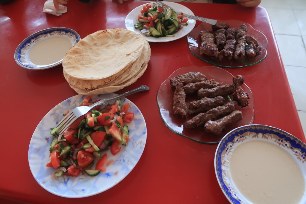 By this time, it was already 3:00 p.m., and we hadnโt eaten anything all day. Leaving our bags in the room, we wandered the quiet, dusty streets of Nuweiba. We stumbled upon a small local restaurant selling grilled meatโkofta. We ordered two plates, which came with grilled beef, lamb, fresh salad, and bread. It was delicious and exactly what we needed after such a long day.