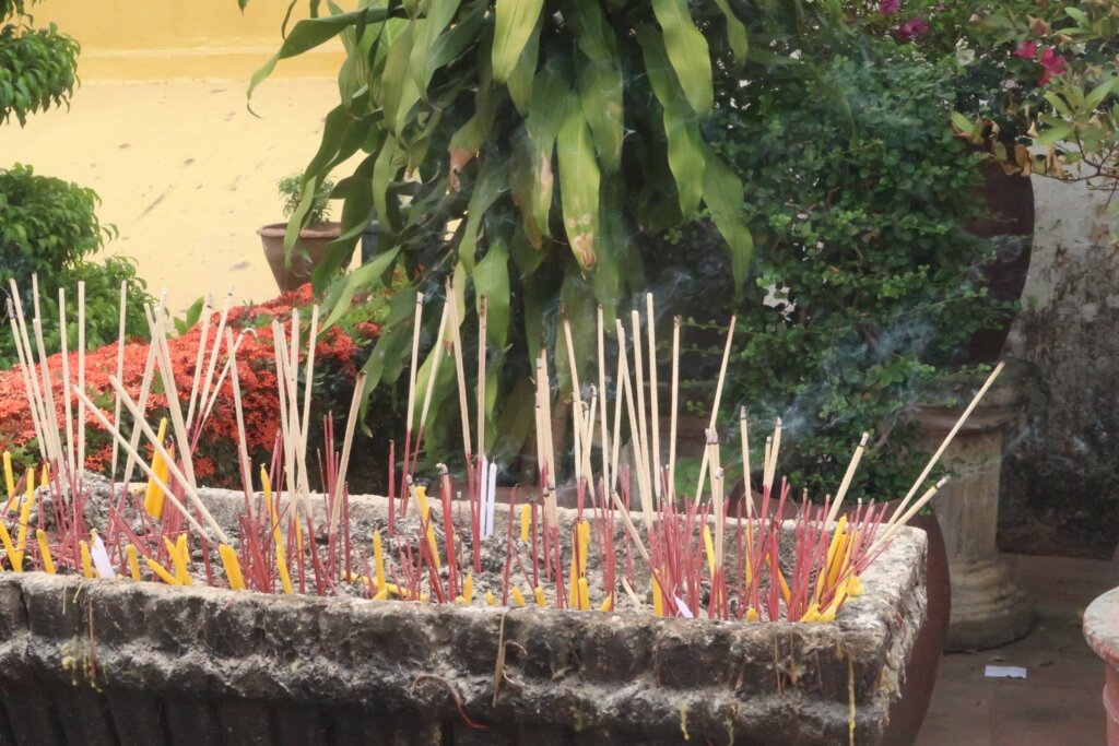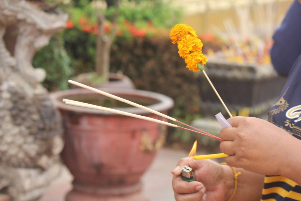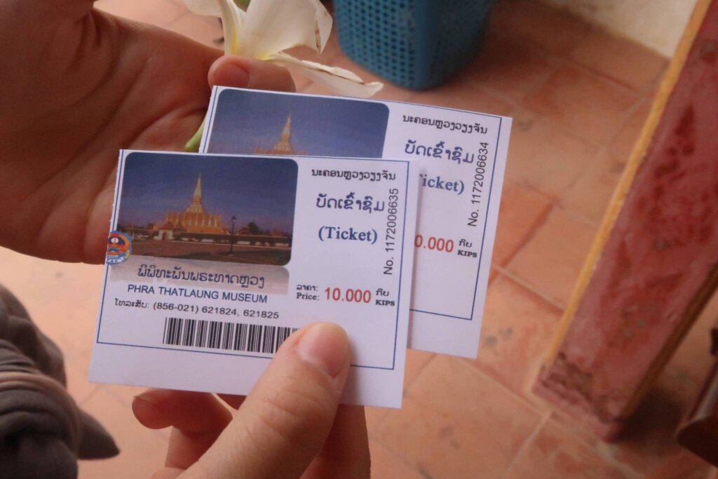 We ventured into the museum area within the temple grounds, which required a ticket (10,000 Kip per person, approximately 1,400 KRW). Inside, locals guided us in lighting incense and offering flowers at a small altar. Their warmth and guidance made the experience more personal.