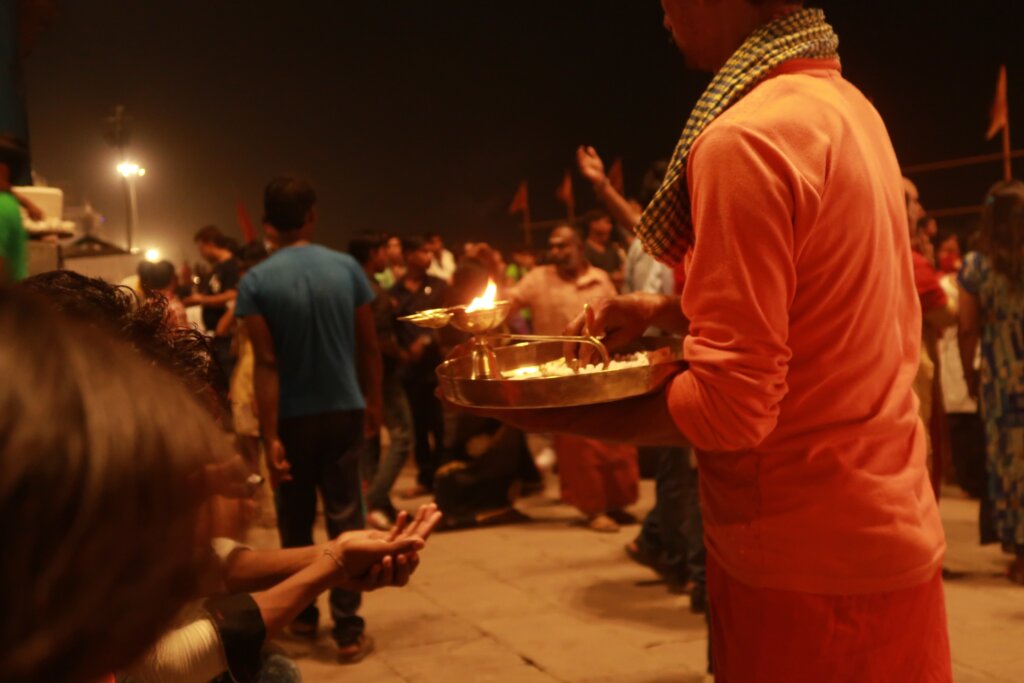 As bells rang and chants reverberated through the air, the atmosphere became electric. Priests moved gracefully, waving incense and fire lamps as part of the ritual. People gathered around the flames, placing their hands over them to capture the warmth and transferring it to their foreheads in a symbolic act of purification.