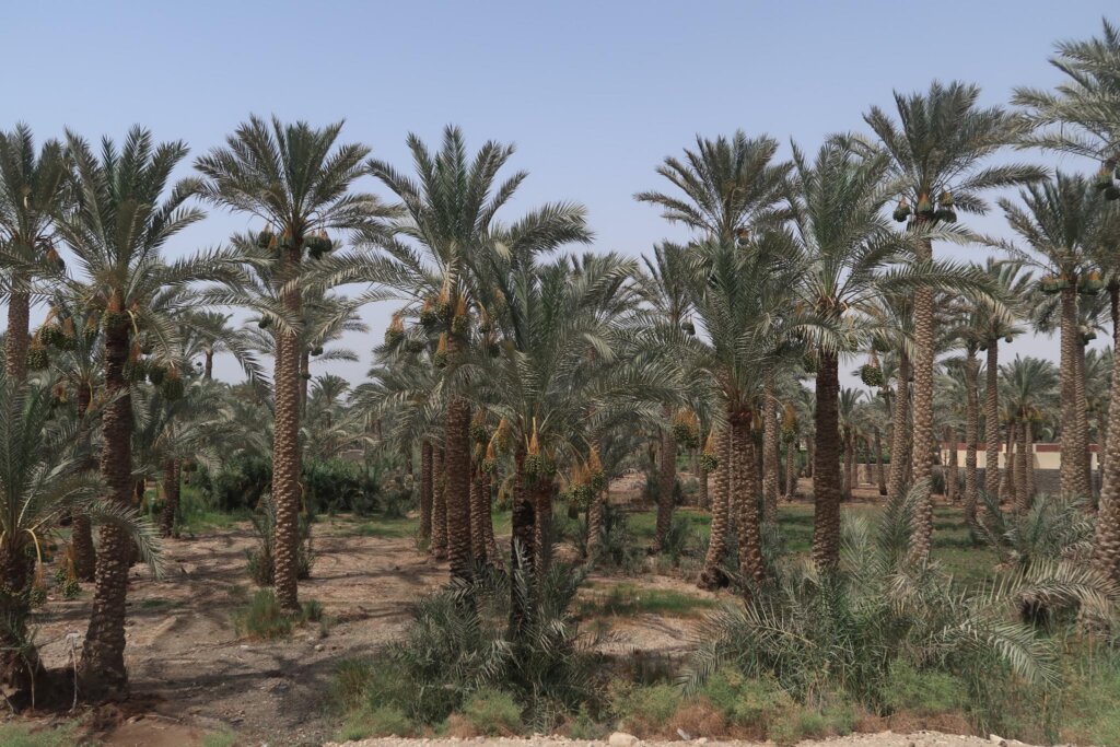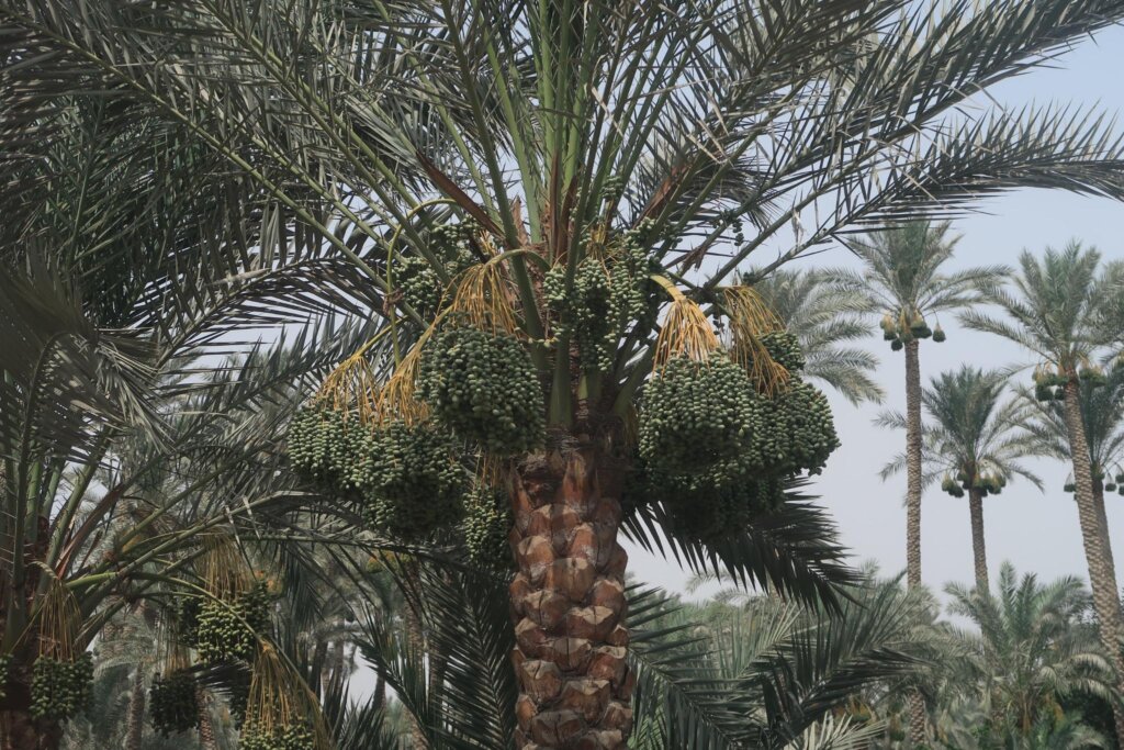 On our way out, we passed rows of date palms, and something struck me — these weren’t ordinary palm trees. Their fruit was different.