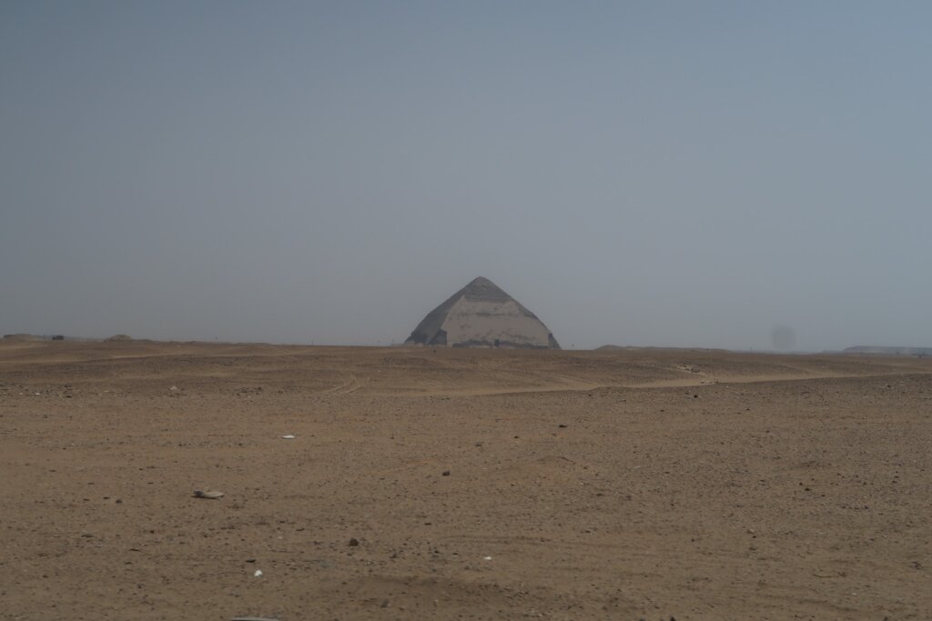 In the distance, we spotted the Bent Pyramid — a clear symbol of architectural trial and error. Its angle shifts mid-way up, giving it an unmistakable broken shape.