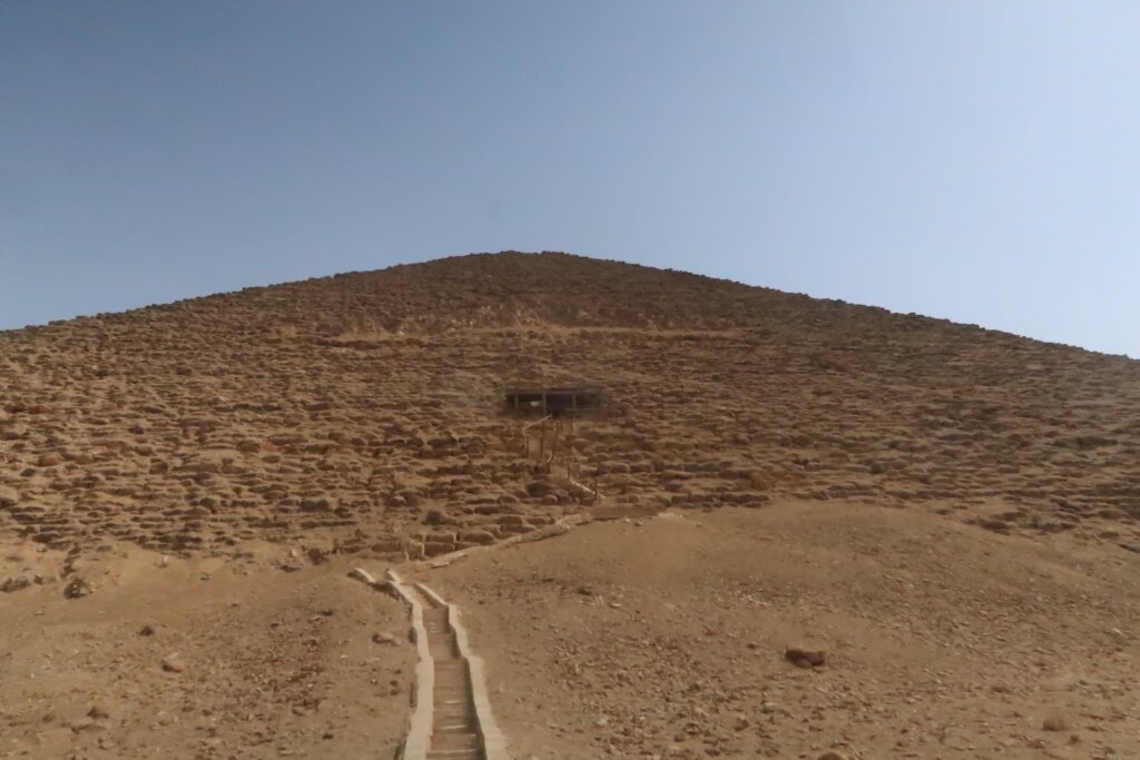 This was Pharaoh Sneferu’s first major attempt, and he had to reduce the angle mid-construction to prevent collapse.