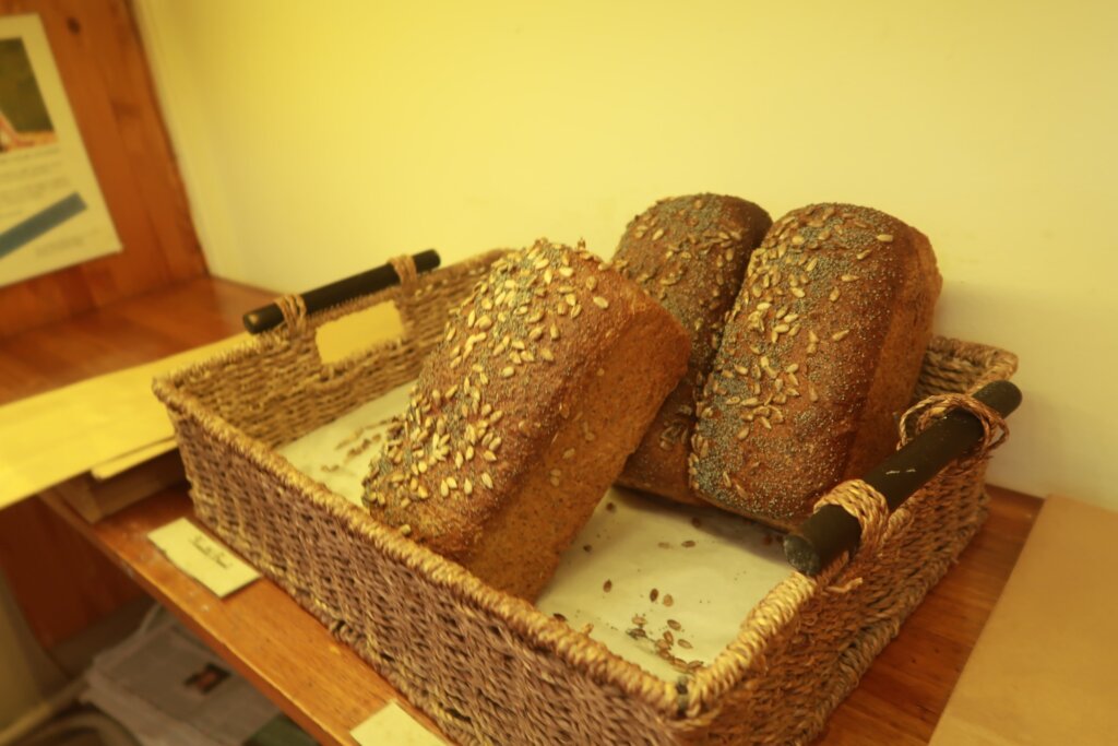 She pointed to… multigrain bread. Not quite what we were craving.