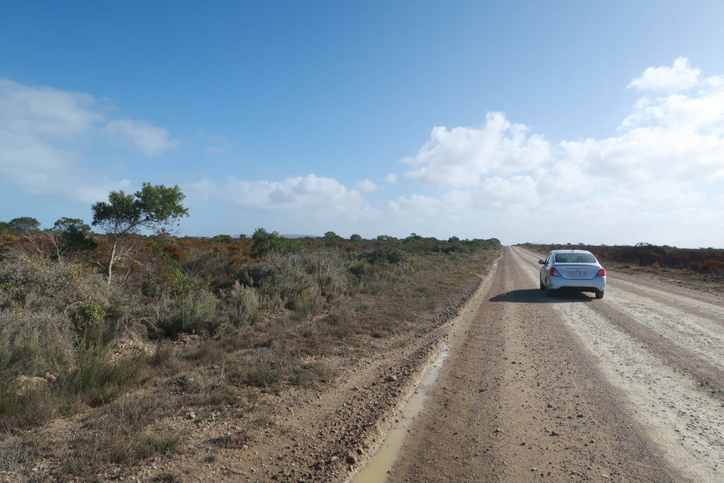 For the first time on our Garden Route drive, we hit a gravel road after Agulhas. The scenery was stunning, but the ride got bumpy — take it slow and enjoy the view.