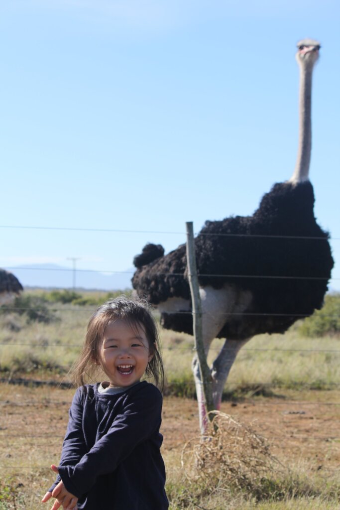 • Ostrich Farm Encounter: Sweetie got up close with ostriches for the first time. Her reaction — pure wonder.