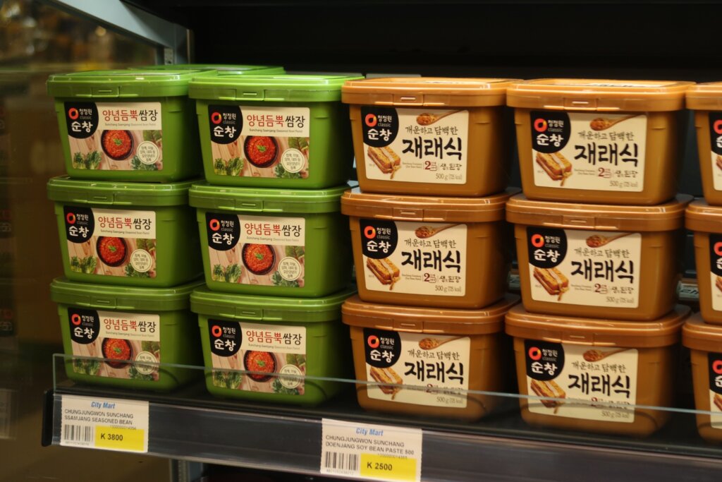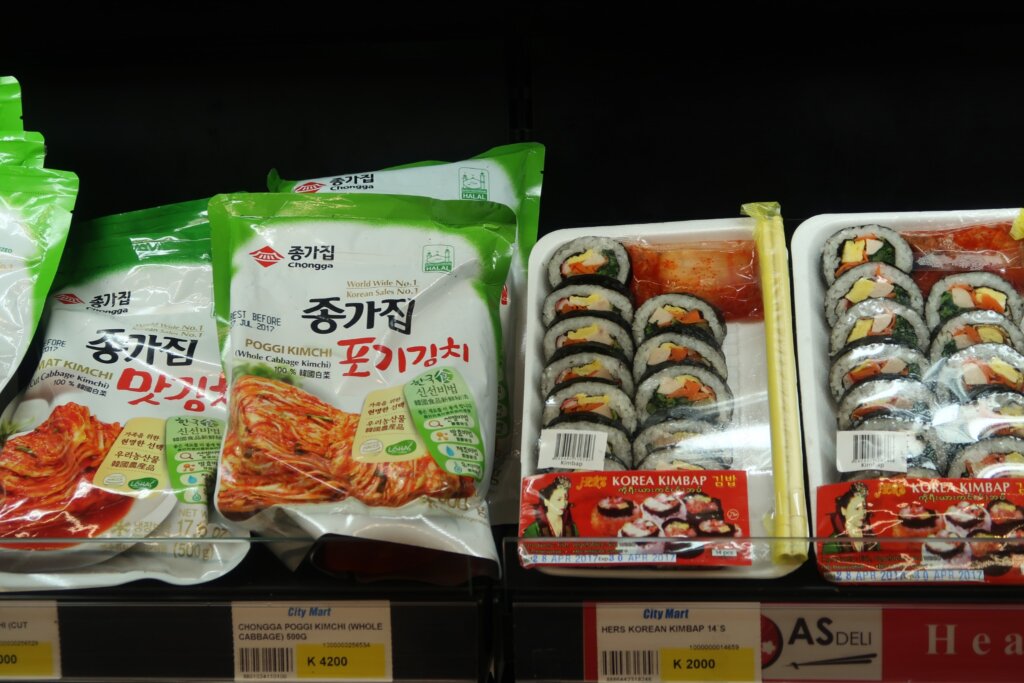 From kimchi to packaged kimbap, the sight of familiar Korean items made us smile, though we werenโt quite craving them yet.