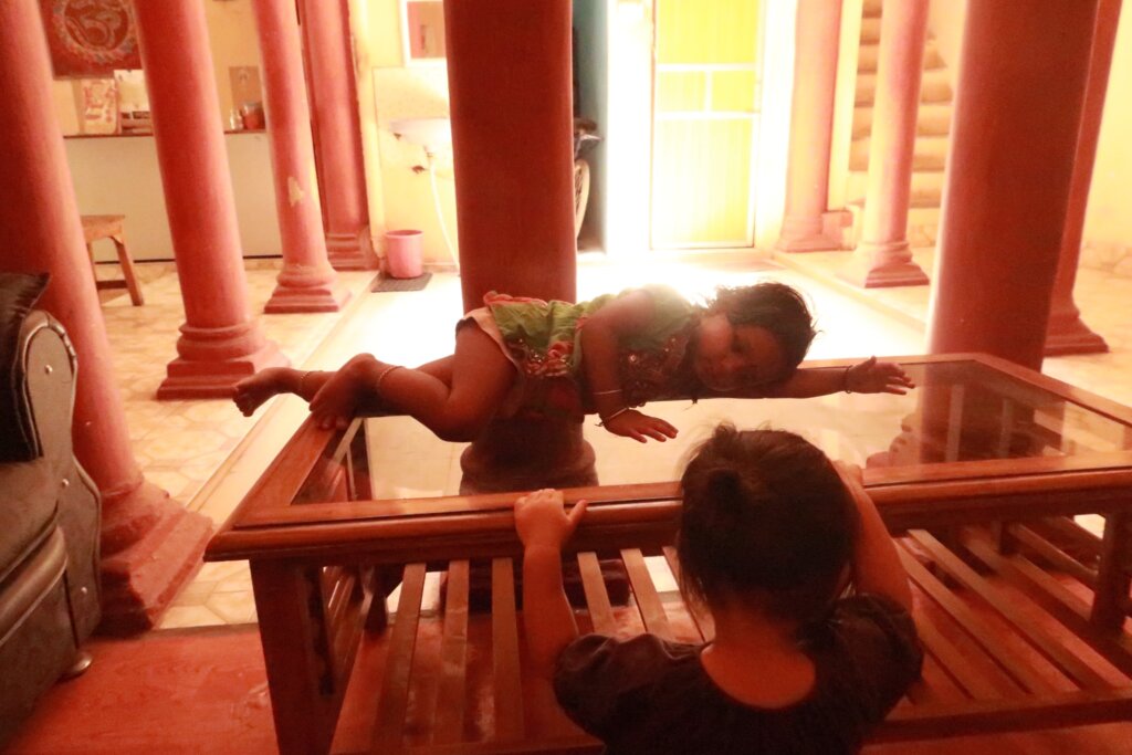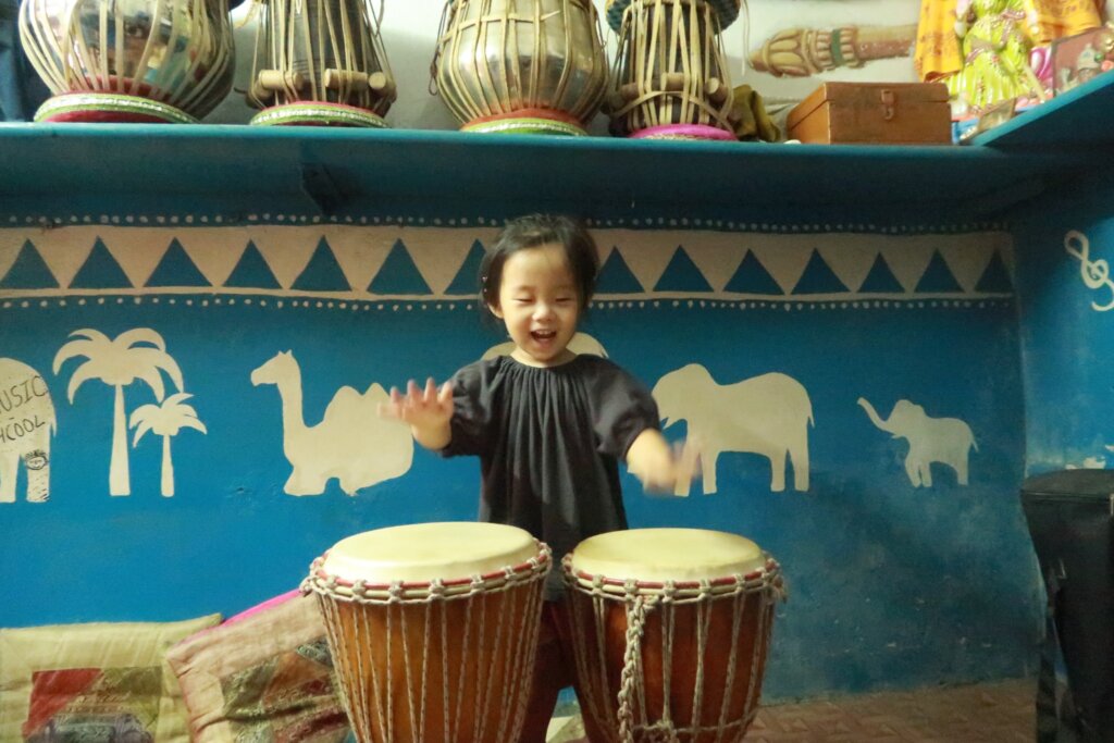 Before heading to the station, we spent time with a local child from the guesthouse. Sweetie had a blast playing, and it reminded us how kids adapt and find joy in every corner of the world.