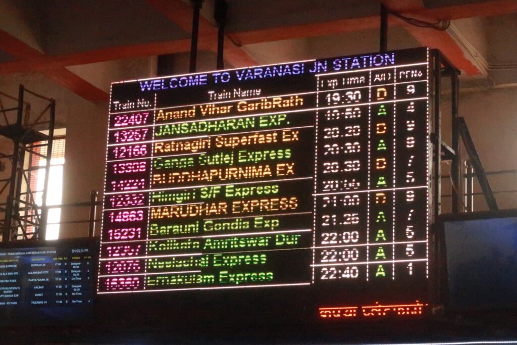 Arriving at Varanasi Junction, we anticipated delays based on prior experiences. After checking the electronic boards, we settled into the upper-class waiting roomโa much-needed refuge with air conditioning and sofas.