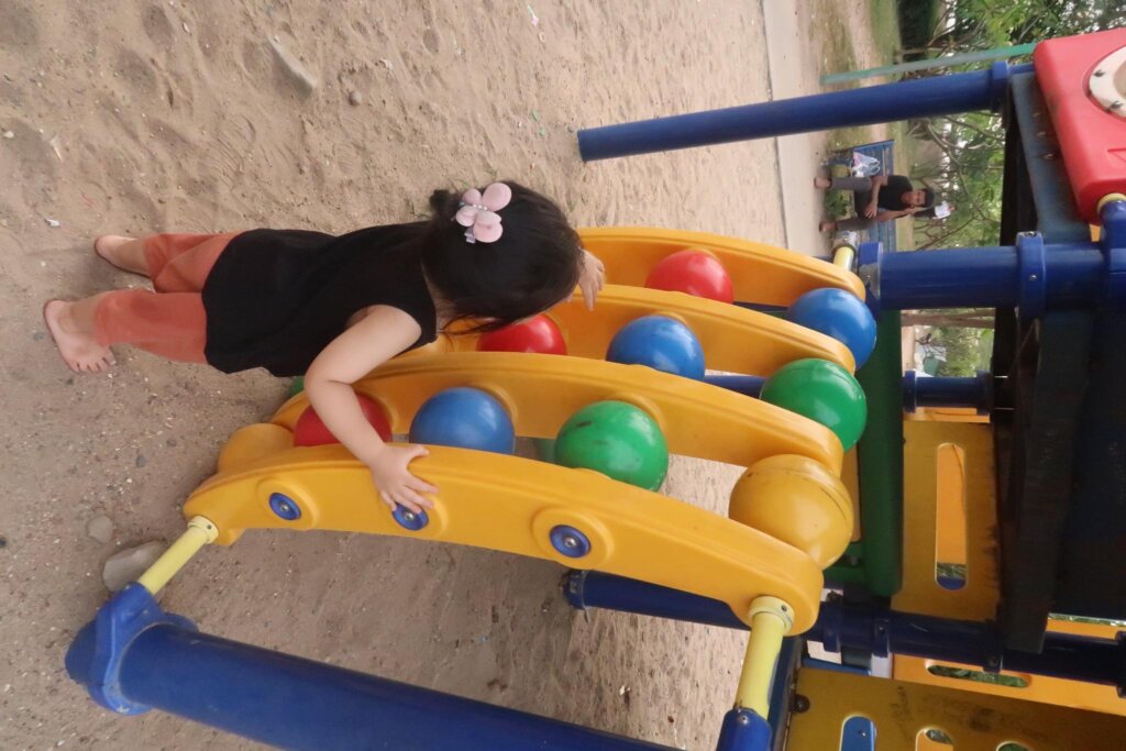 Sweetie spotted a seesaw occupied by another child and eagerly joined in. Despite the slight awkwardness on our part as parents, the kids hit it off instantly. Moments like these are a reminder that children have an incredible ability to connect, no matter the language or culture.