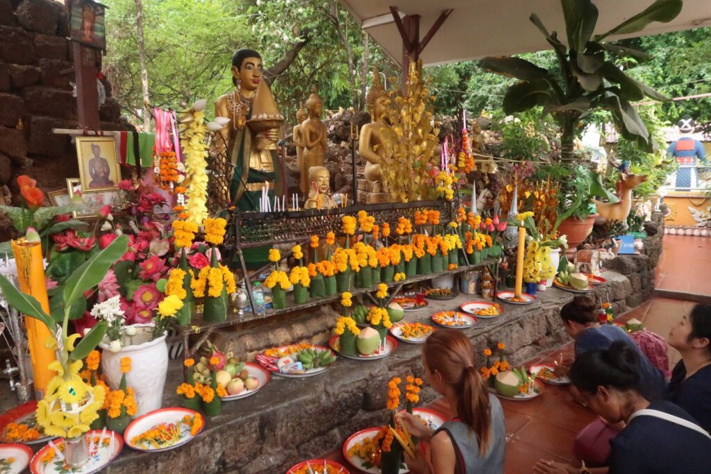 In contrast to the serene atmosphere of the New City Pillar Temple, Wat Si Muang was vibrant and full of life. Highlights included: