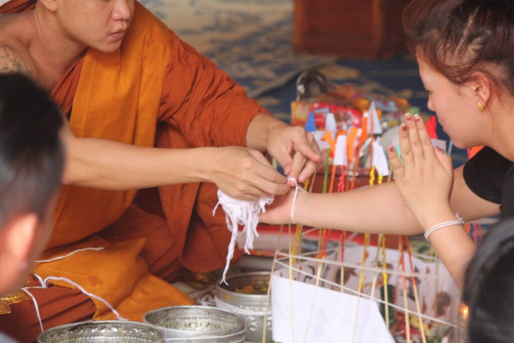 • Observing monks performing blessings, tying sacred threads on visitors, and sprinkling holy water.