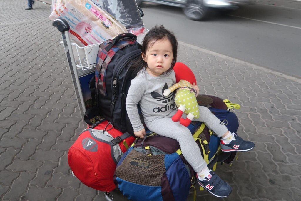 We collected our luggage and exchanged some money right inside the airport (at a rate of 1 USD to 22,860 VND as of April 3, 2017). Sweetie enjoyed the airport trolley ride, allowing us to move smoothly.