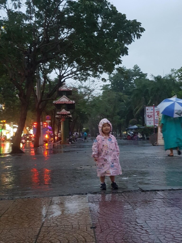 The rains hit just as we stepped off the bus, so having a rain cover for bags and a child-sized poncho was essential. Expect sudden downpours and be prepared!