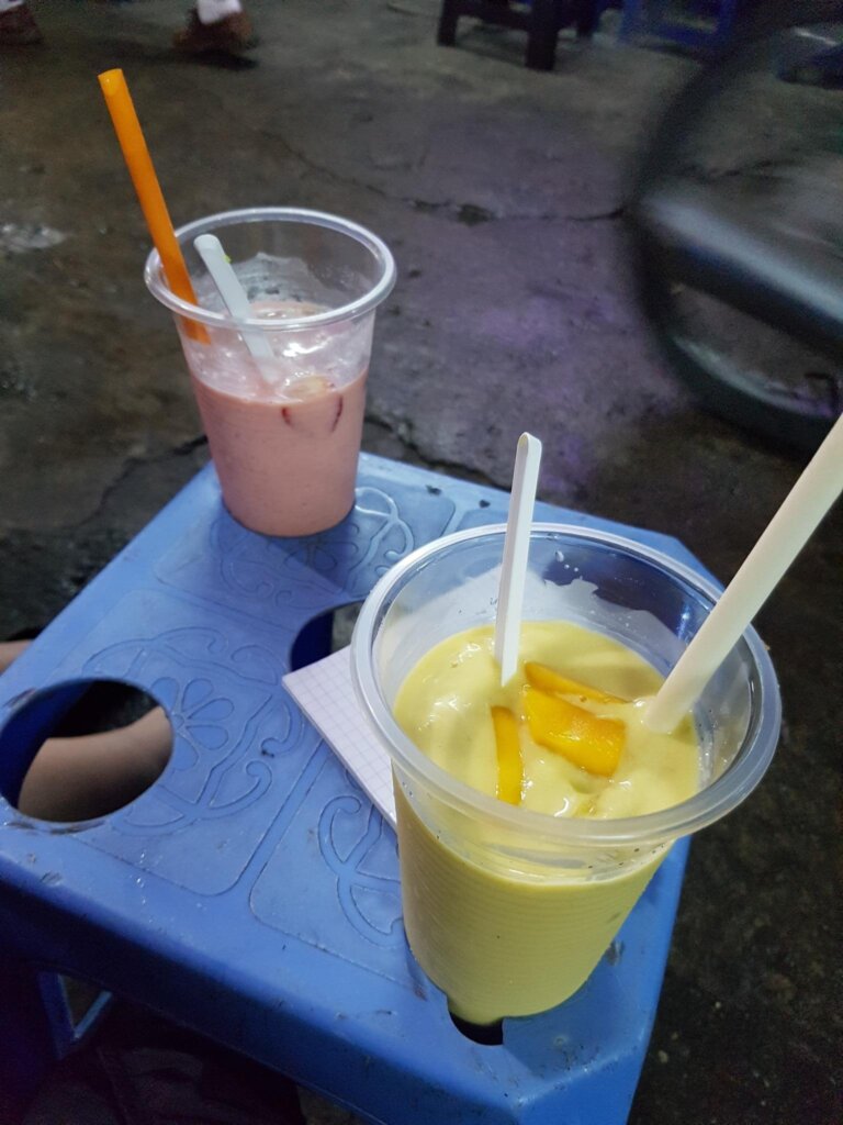 After returning to the bustling De Tham Street, Julie was eager to try the fresh fruit juice at “Five Boys Number One.” For 30,000 VND, we each got a smoothie, and as we sipped, we felt a moment of pure happiness – our world journey was truly underway.