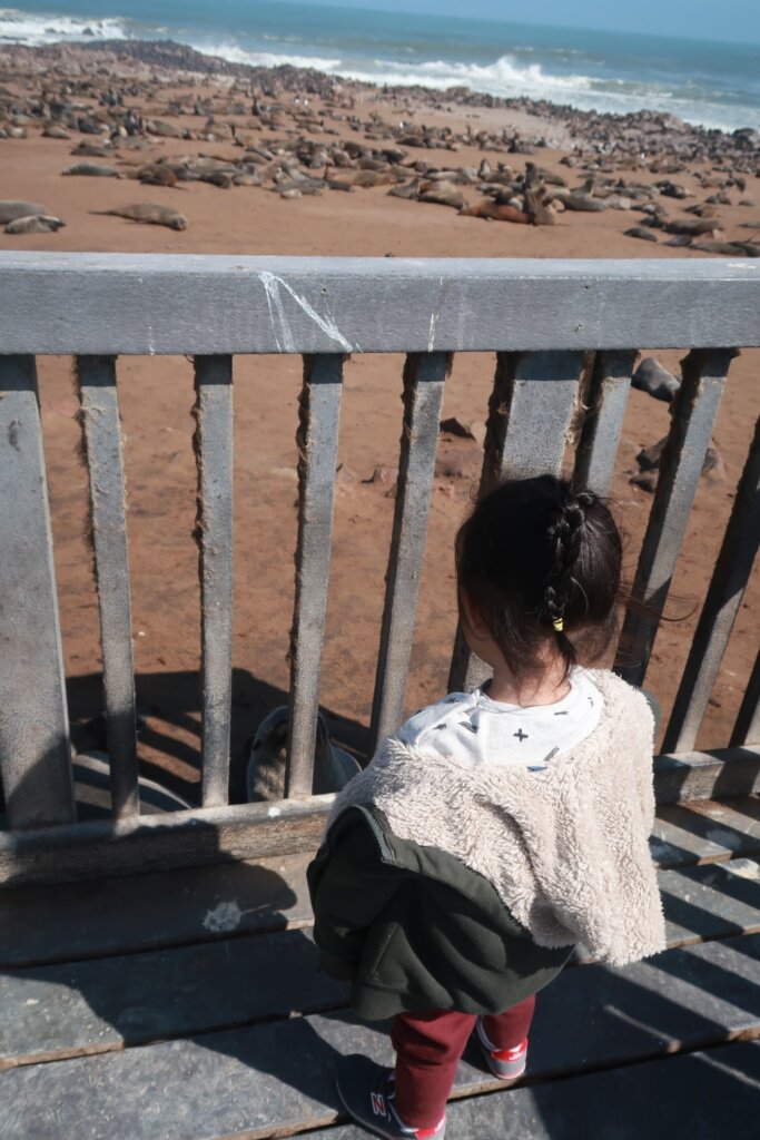 Cape Cross is unforgettable, but not for the reasons you might expect. Bring a mask or scarf for your baby (and yourselves) if you’re planning to visit dense animal colonies. Sweetie couldn’t stop talking about “that seal smell.”
